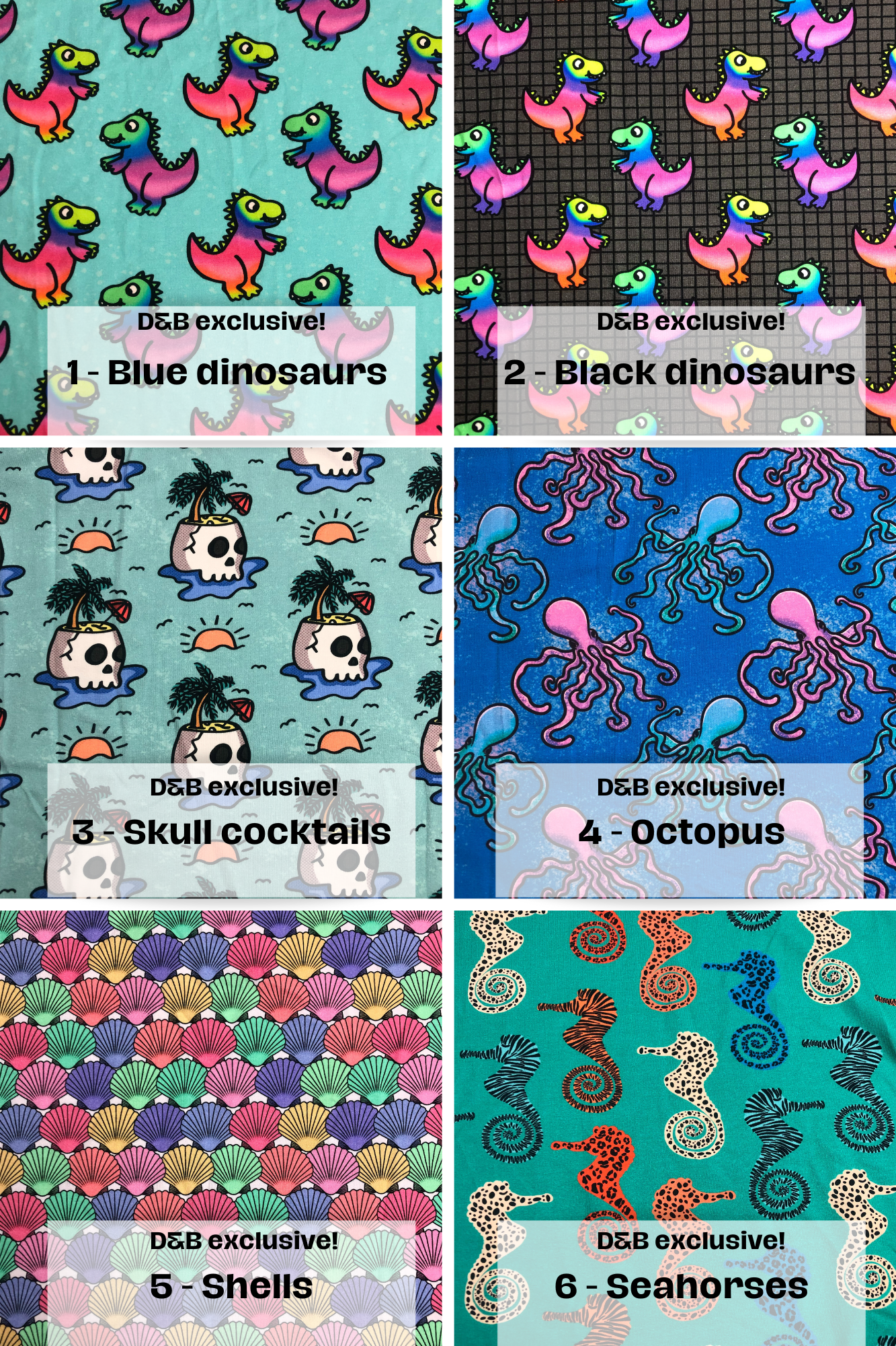 You can choose the waistband and cuff colour or keep them the same as the main fabric. If you can't choose, put 'surprise me' in the box and I'll choose for you! The default option will be for the waistband and cuffs to match the main fabric.